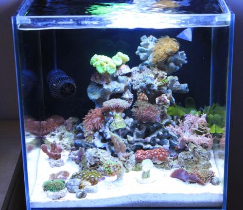 A dzieki dzieki:) Niestety podstawki juz przyklejone miliputem do skaly, no ale dajmy im czas chyba kiedys zarosna. Pare korali zmienilo swoje polozenie, euphylia poszla na gore i dopiero teraz ladnie puchnie. Lampka dennerele to 50B/50W, faktycznie troche bialo ale z nia nie da sie nic zrobic. W tygodniu przychodzi nowa lampa do wiekszego zbiornika. Skrece ja na min i bedzie swiecic narazie nad tym maluchem. Dzis do akwarium trafily pierwsze rybki, dwa malutkie blazny, od razy zajely rhodactisa. Pozdrawiam