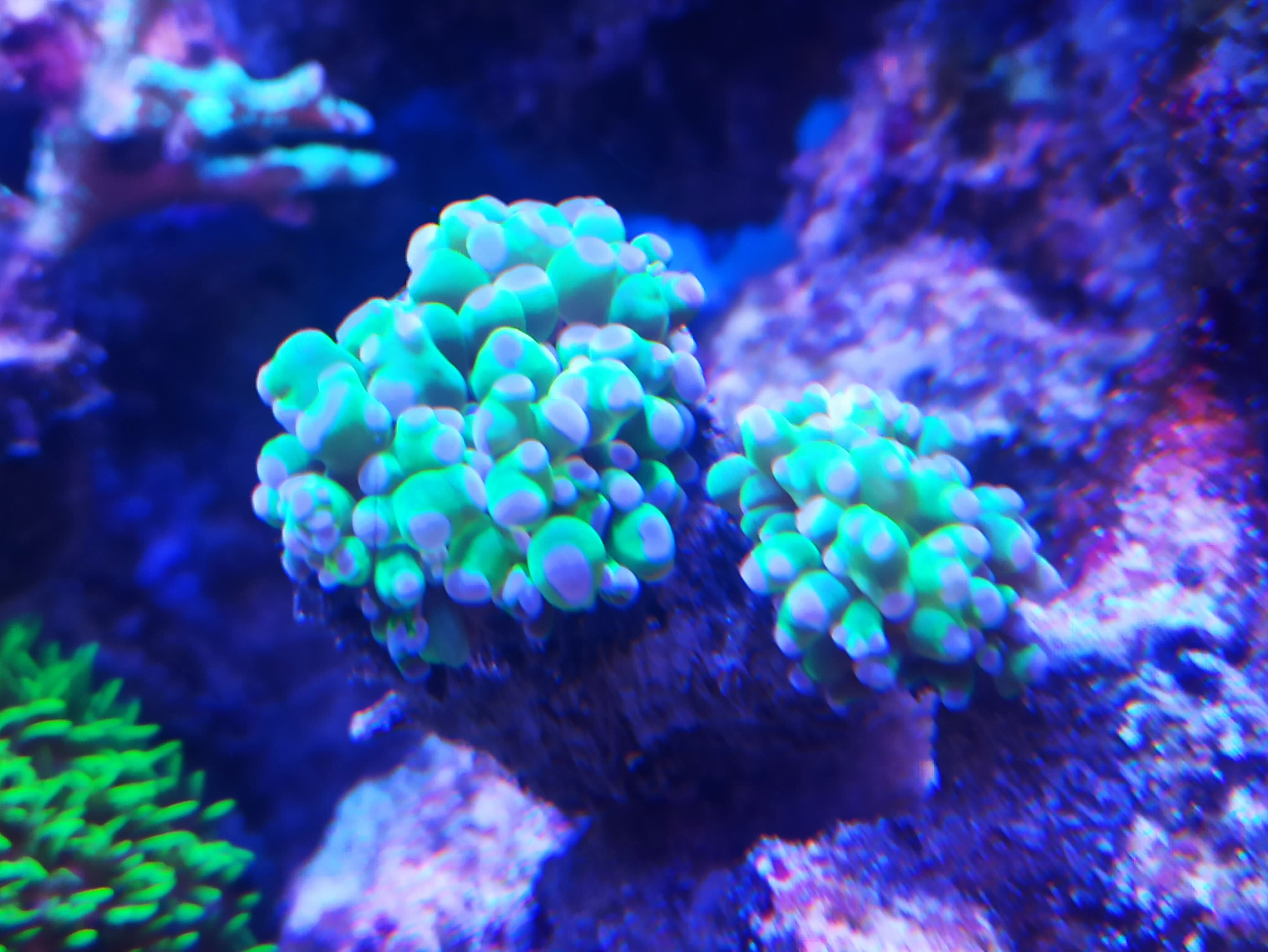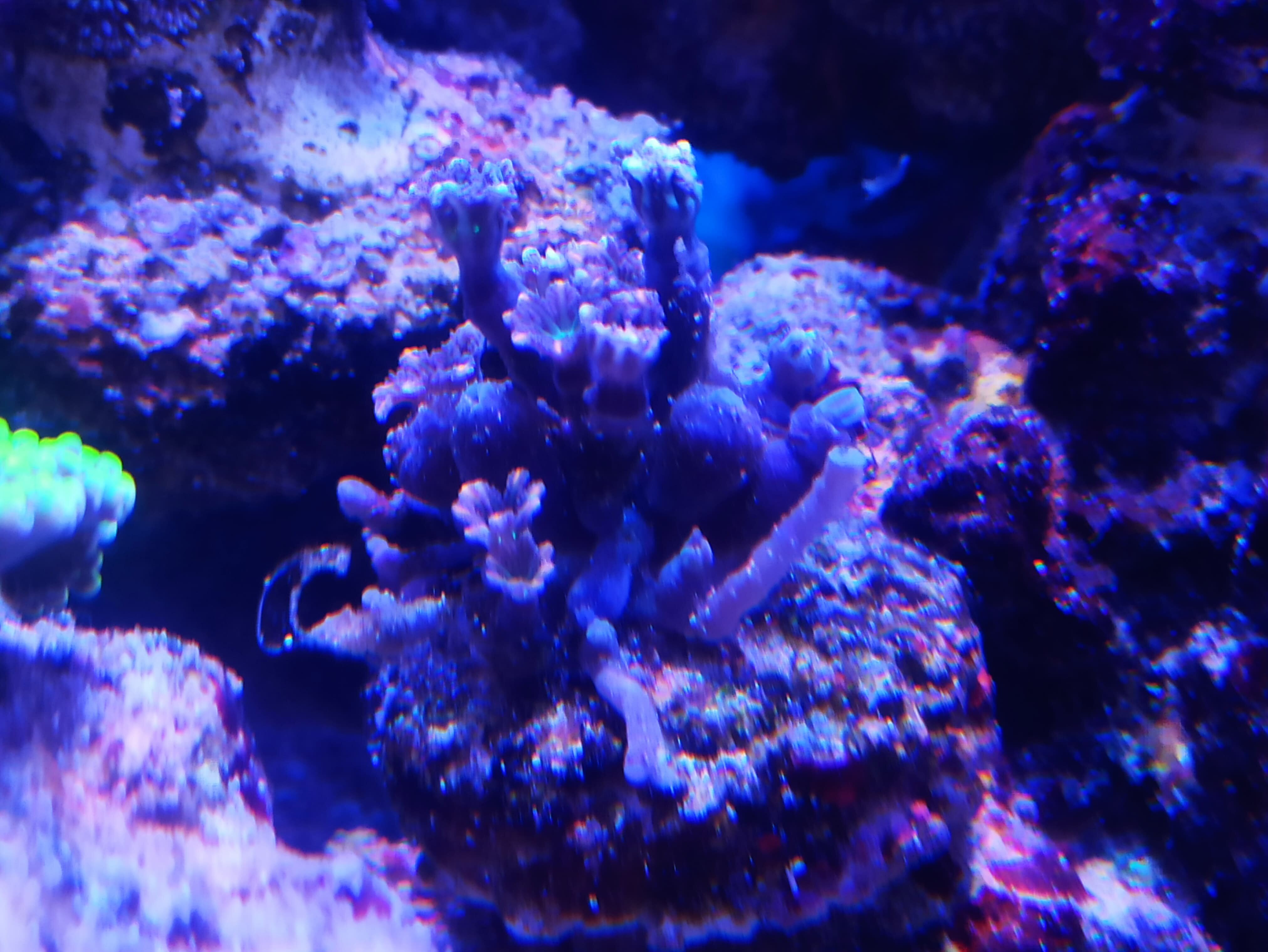 seriatopora hystrix w zasadzie padła w różnych miejscach zaczeła bieleć i zrzucać tkankę, euphylia pompuje się może w 1/5, Clavularia Papaya pobielały końcówki kwiatków, można przyjąć że pompuje się w mniej jak 1/5 alevopora podobnie jednak kolor bez zmian skumulowało się to z awarią grzałki temperatura spadła do 23 stopni.