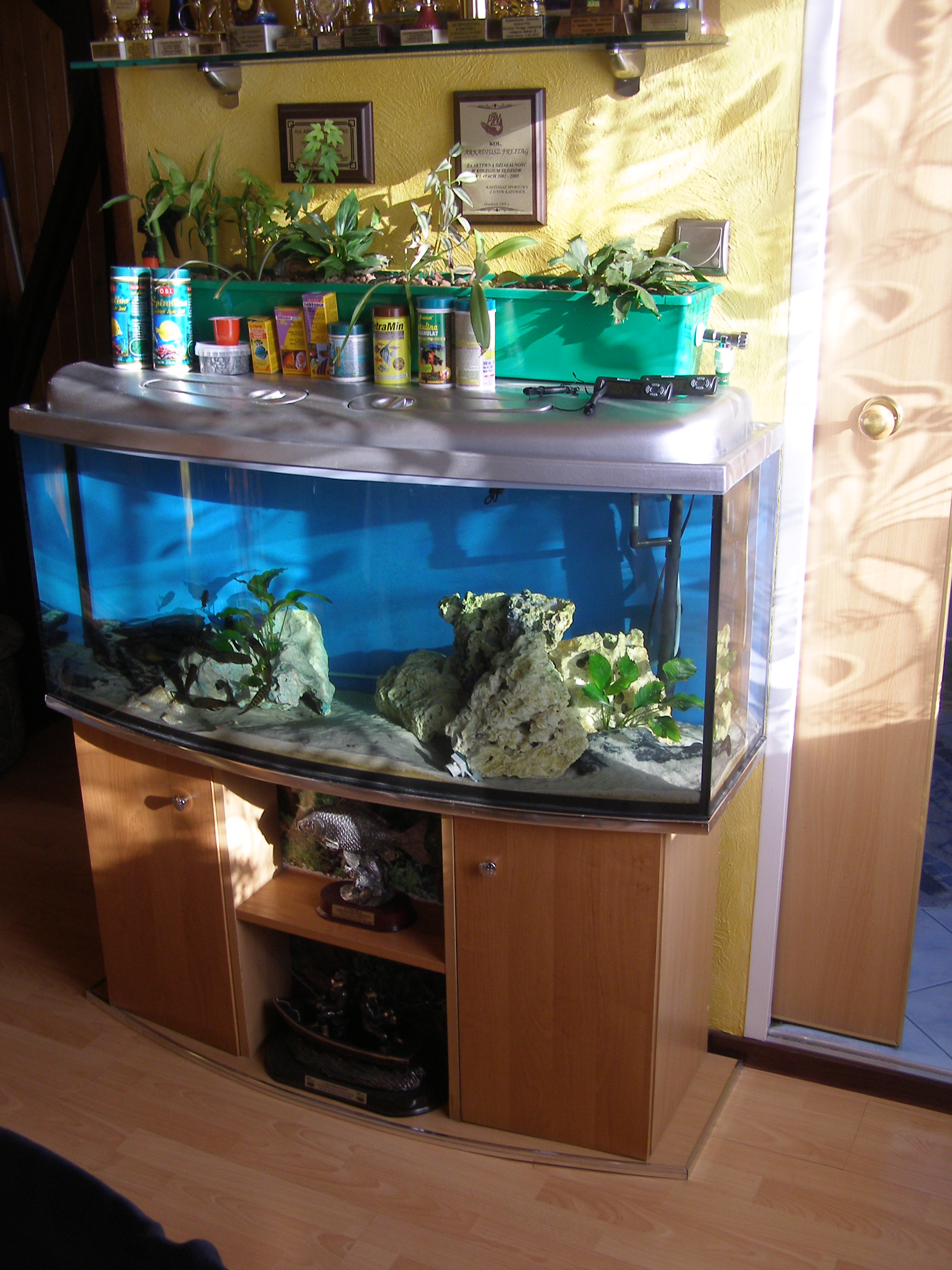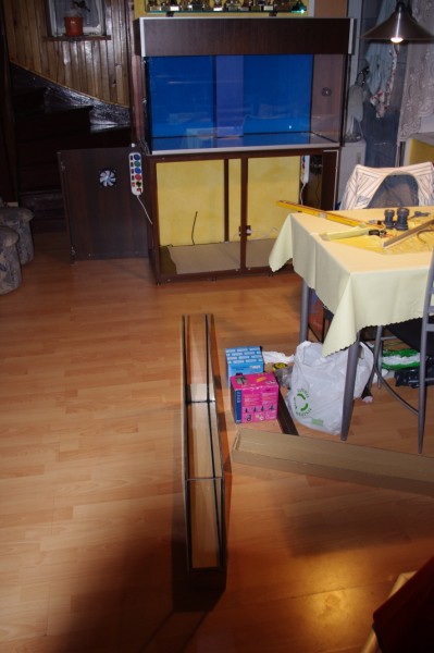 Na początku 2010 jako pierwsze zamówiłem szkło (w wyżej wspomnianym Zabrzańskim sklepie) i jakież było moje zdziwienie jak po 3 dniach dostałem telefon, że akwarium jest do odbioru. Jeszcze bardziej zadowolony byłem przy odbiorze – wszystkie szyby wklejone bardzo starannie a wymiary zgadzały się co do milimetra. Zadowolony byłem też z ceny – finalnie wyszło ok. 2 PLN/litr na gotowo.