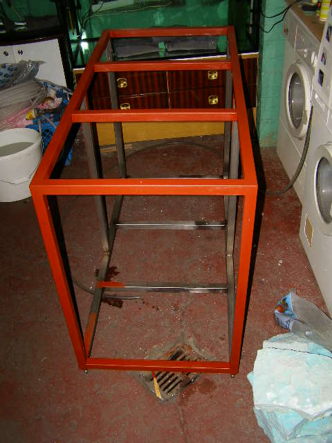 Stelaż został pospawany jak dla mnie zgodnie z wymiarami i moimi oczekiwaniami a w dolnej części wspawano na moją prośbę tuleje z tego samego nierdzewnego materiału z gwintem pod nóżki do poziomowania konstrukcji – w sumie 8 sztuk. Nóżki wykorzystałem z akcesorii meblowych (patrz zdjęcie).