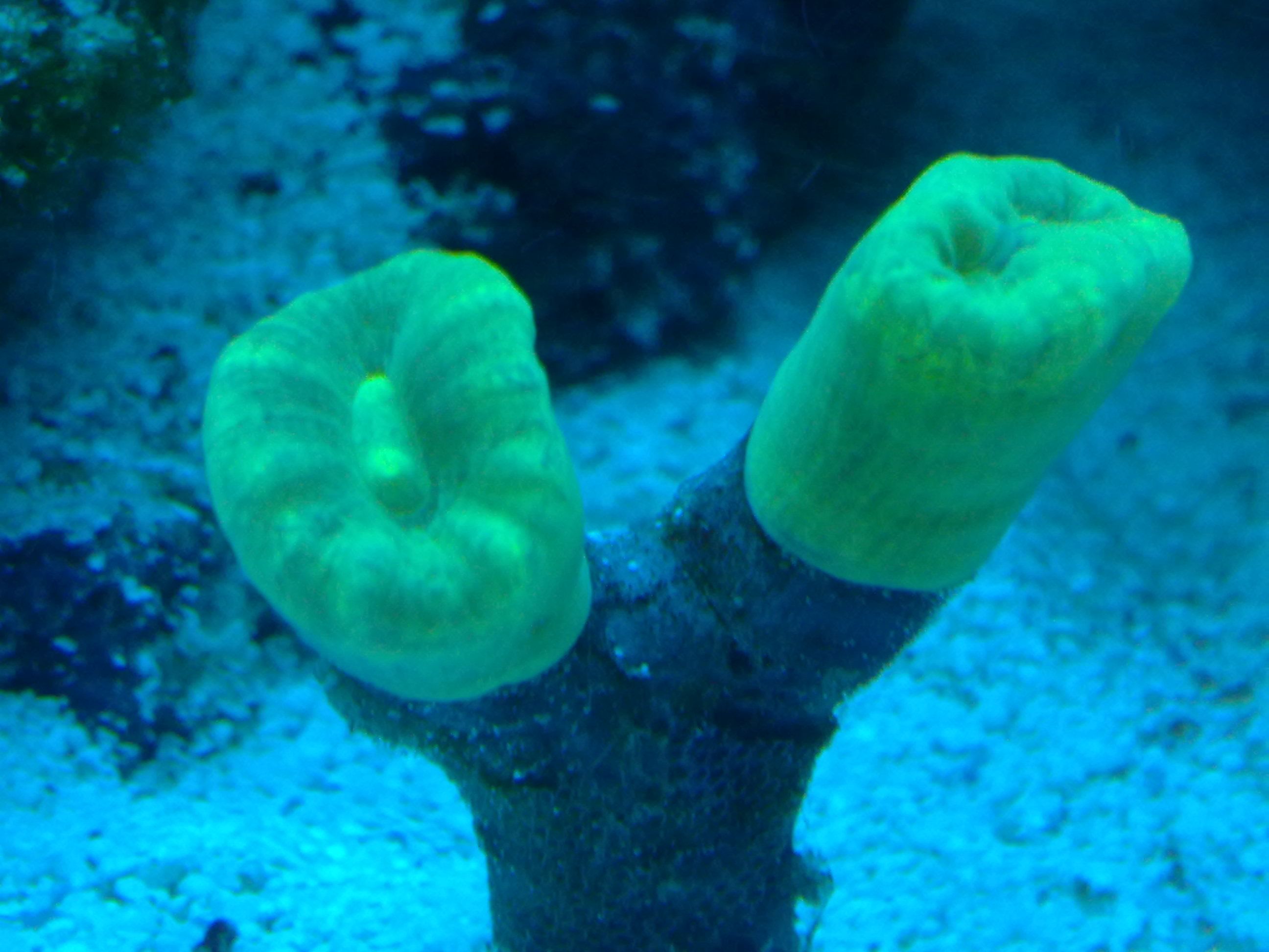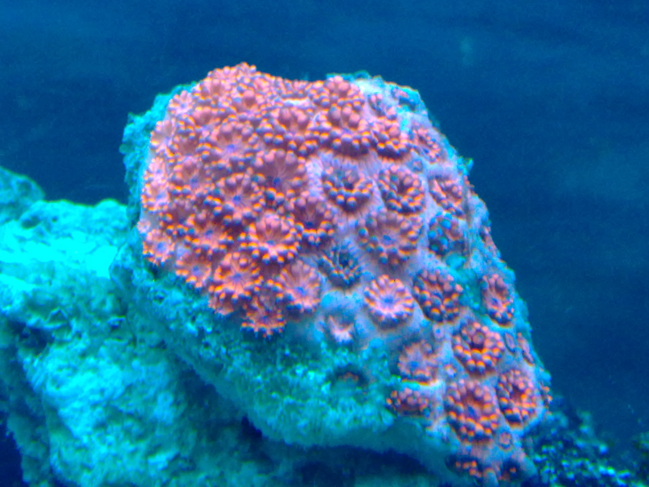 Dziś znowu odwiedziliśmy sklep i tym razem trafiły do nas: żółta Sinularia i szczepka Caulastrea echinulata. Akwarium nabiera coraz więcej żywych kolorów. Skały są już niemal całe pokryte fioletowymi i bordowymi algami wapiennymi, zaczynają także rosnąć na tylnej szybie.